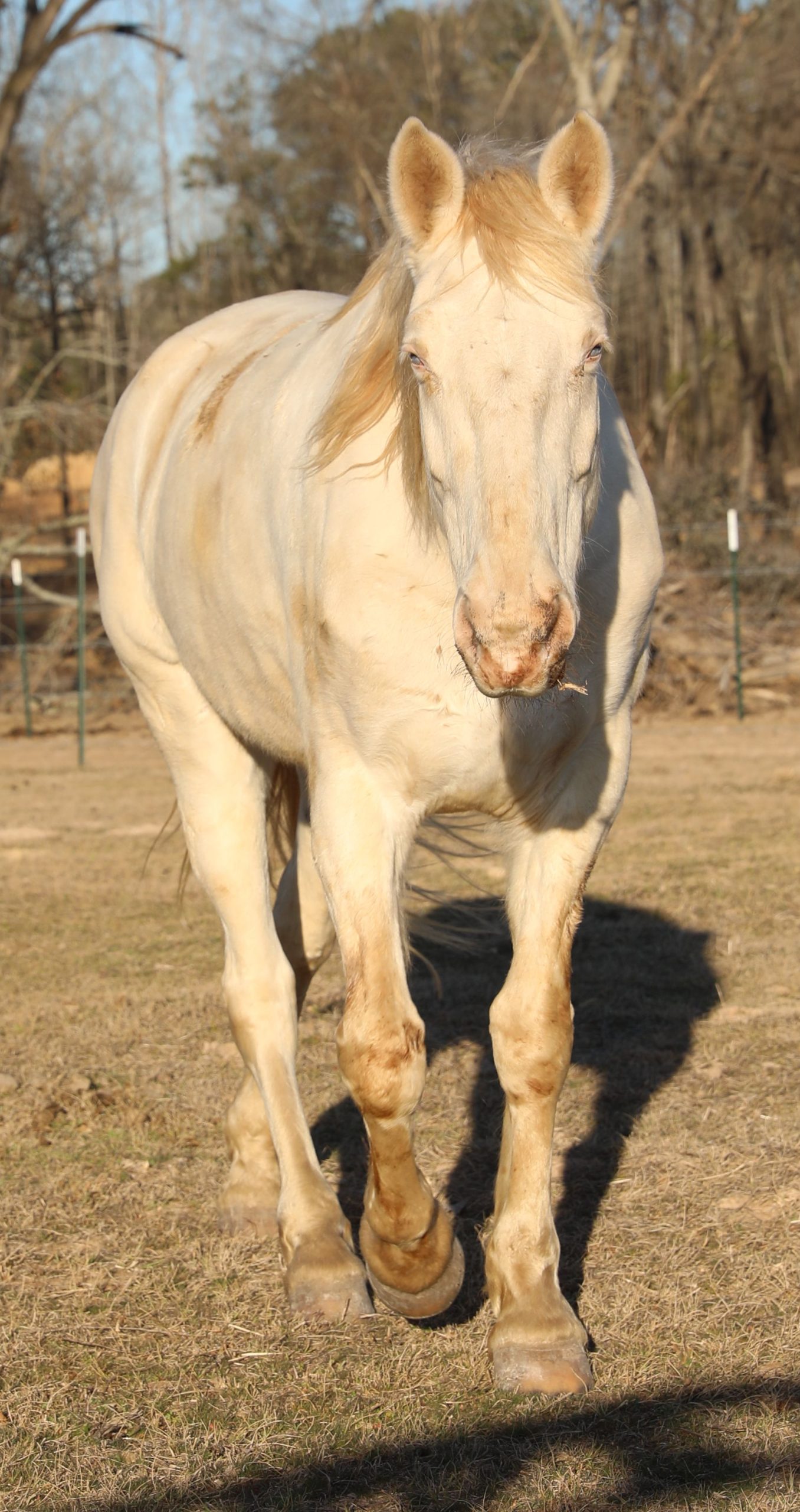 Angel is a breathtaking cremello mare with striking crystal blue eyes and a presence that’s impossible to miss. Her unique coloring and elegant look make her a true standout anywhere she goes.