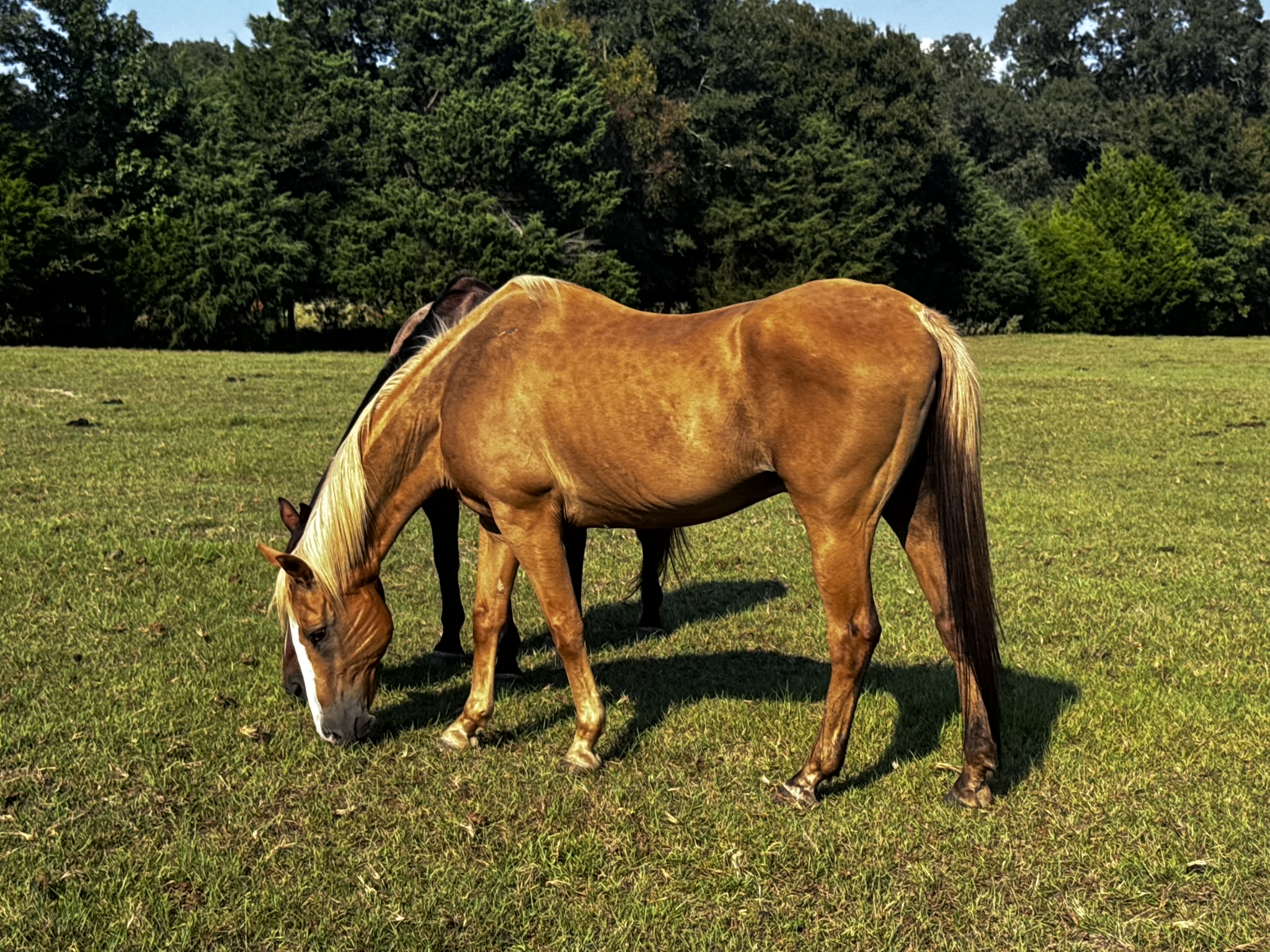 This palomino gelding is 14 years old and has roping experience in his background. He’s built solid and carries himself with the calm confidence you’d expect from a seasoned working horse.