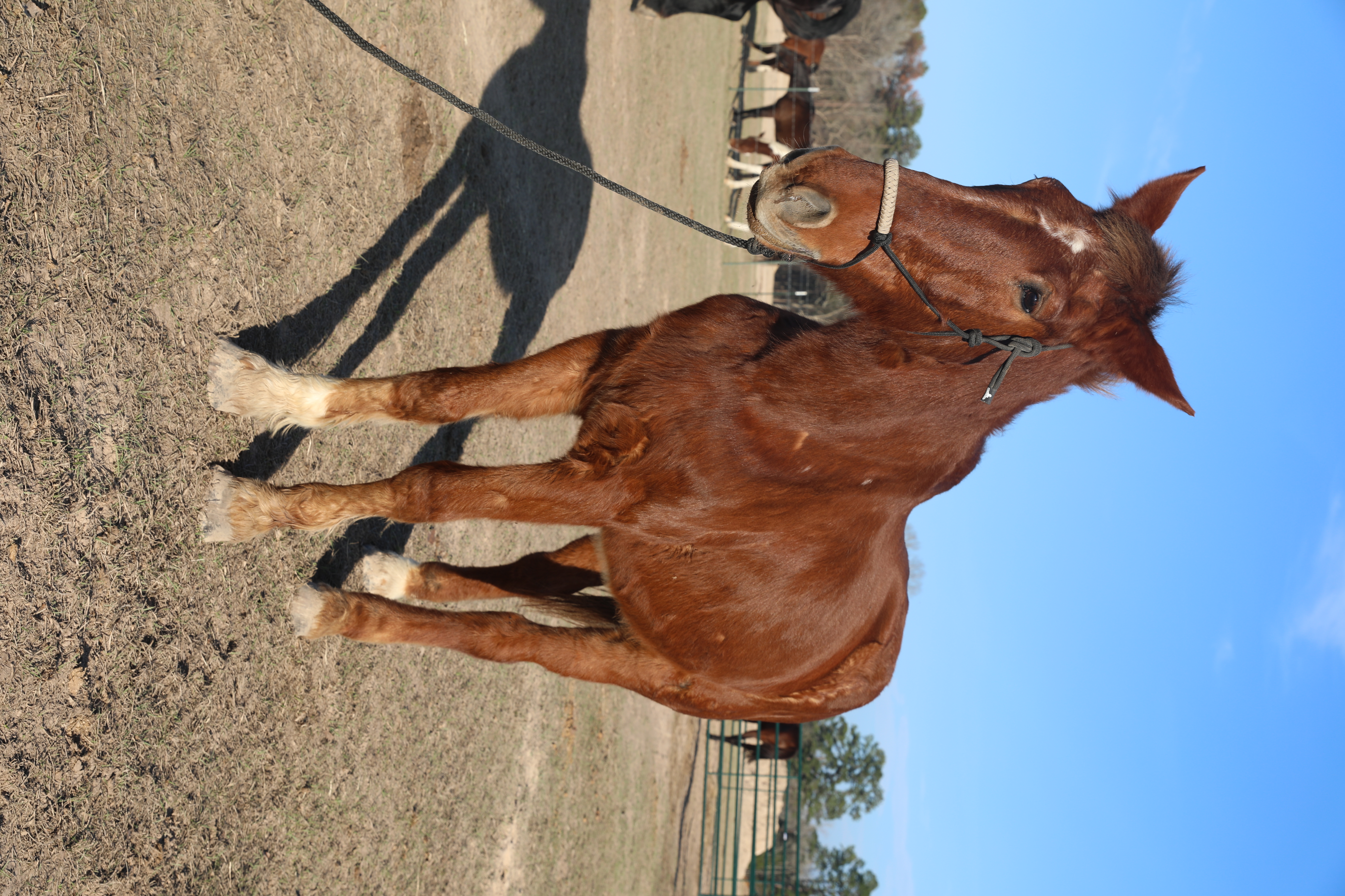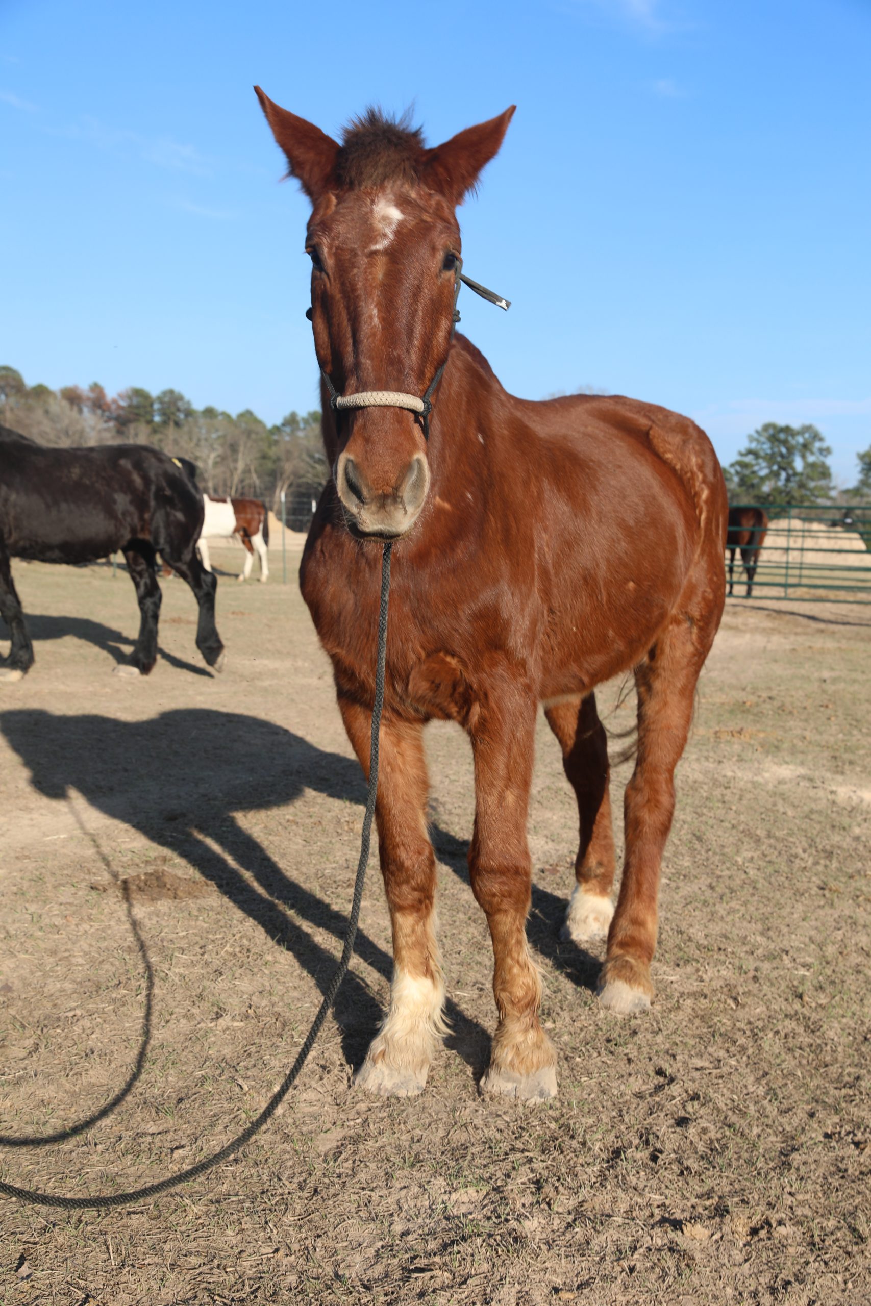 Dumbo is a sorrel draft gelding with a larger-than-life personality. He is incredibly silly and loves making everyone laugh with his playful antics. Even though he’s a big boy, he often seems to think he’s a lap dog, always craving closeness and attention. Dumbo is truly a special guy whose joyful spirit makes every day brighter.