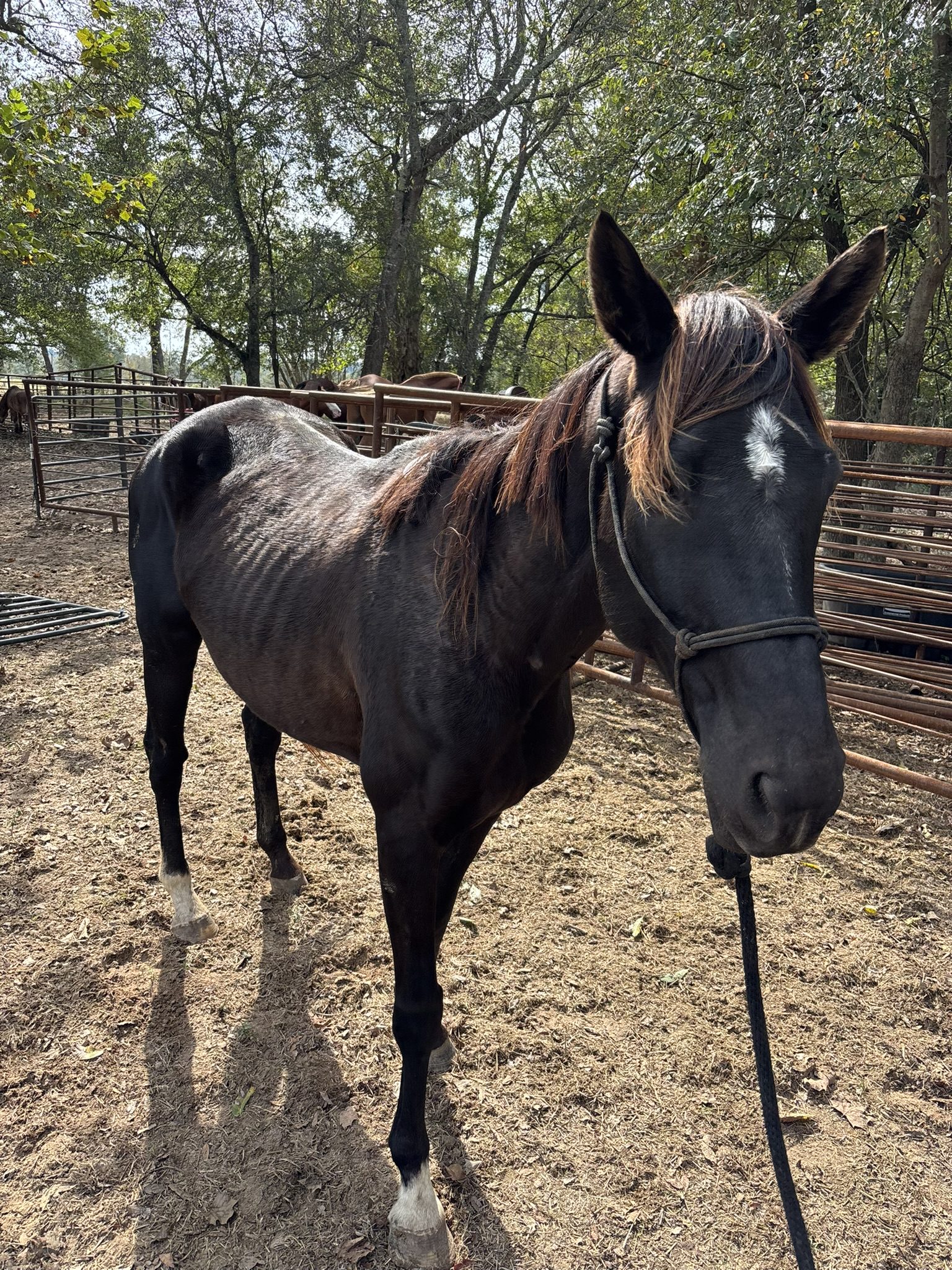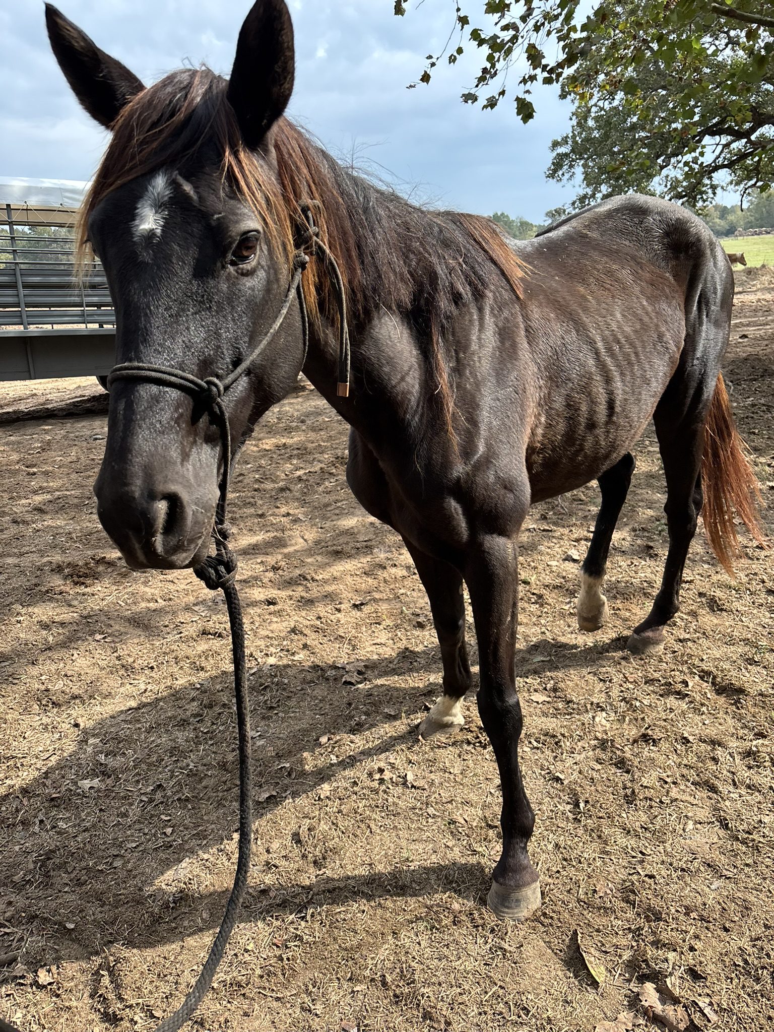 Meet Fancy, a striking black Thoroughbred mare with a sleek, shiny coat and an elegant, athletic build. Her presence is graceful and confident, making her stand out wherever she goes.