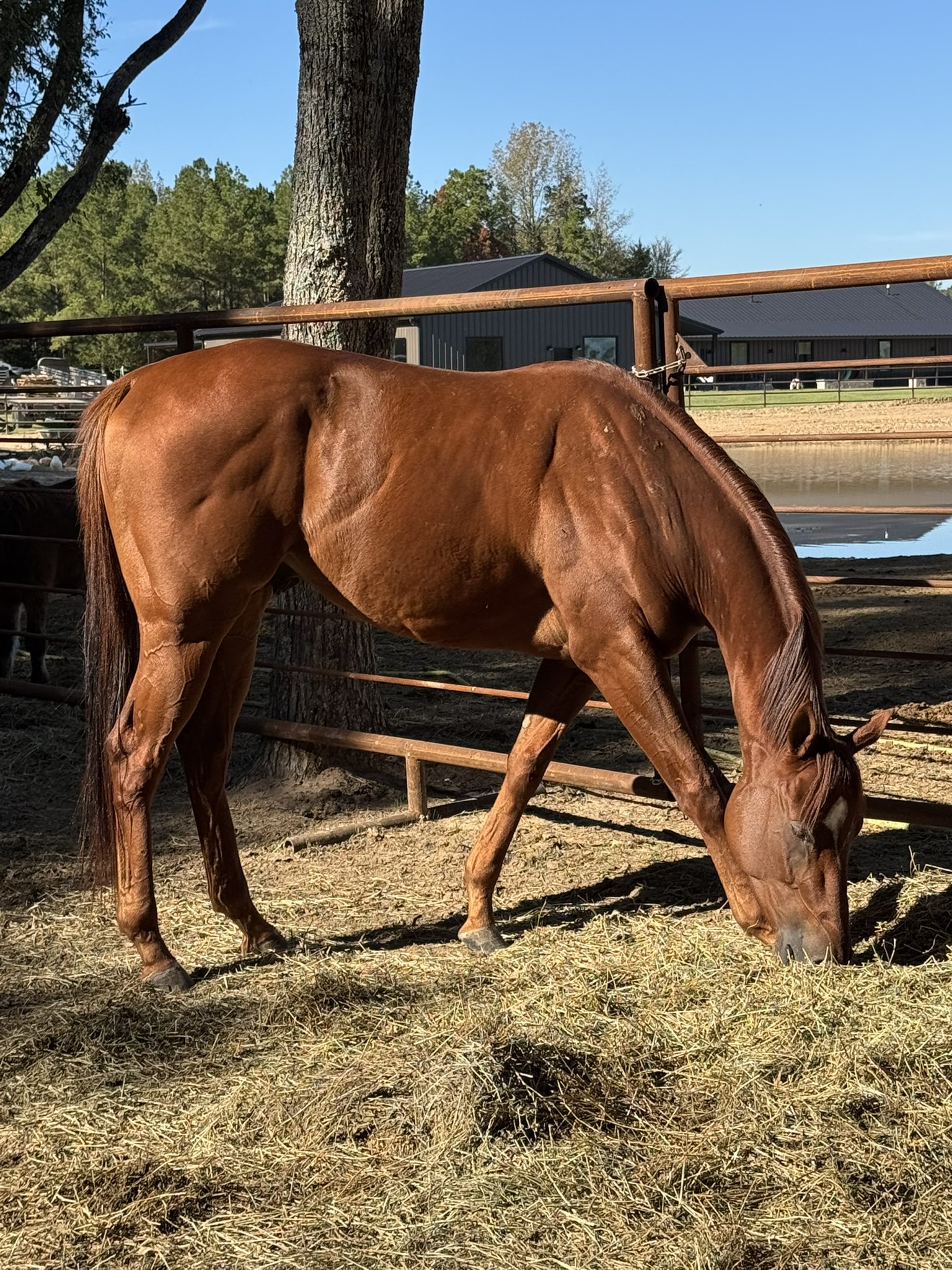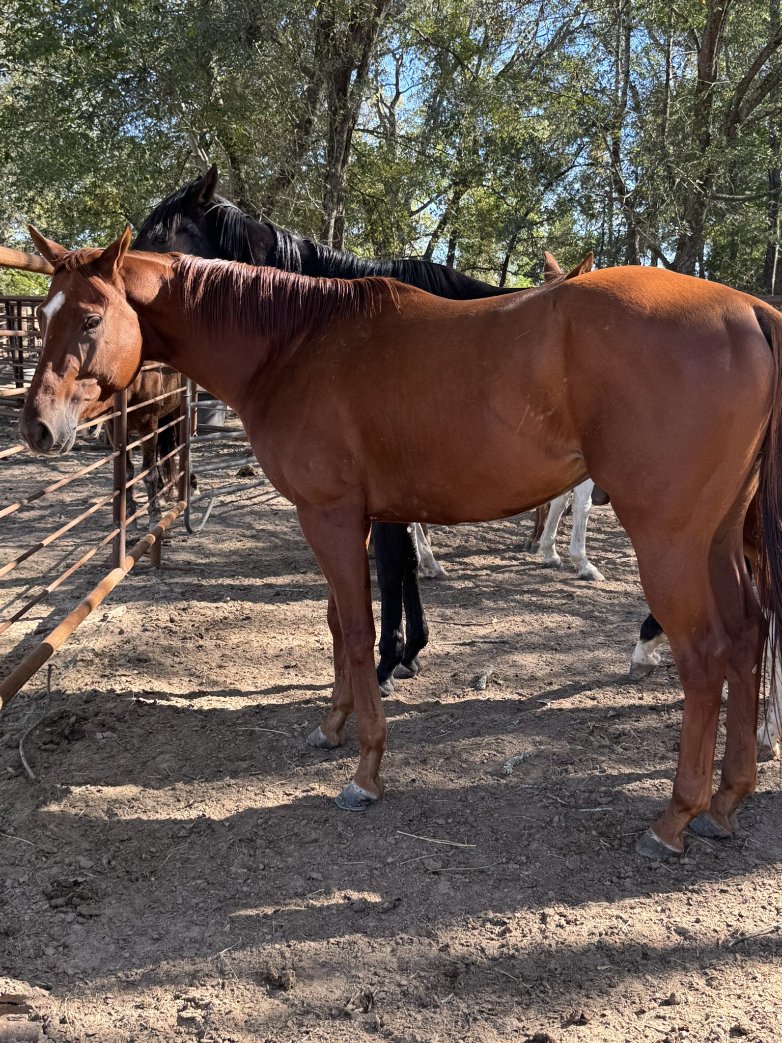 Lollipop is a chestnut Thoroughbred gelding with a truly unique white marking on his forehead shaped just like a lollipop—making it easy to see exactly where he got his name. He’s a sweet, handsome boy with a willing attitude and is always ready to work. With his eye-catching look and kind personality, Lollipop is both charming and eager to please.