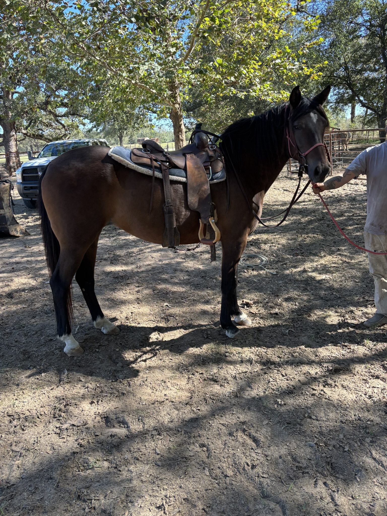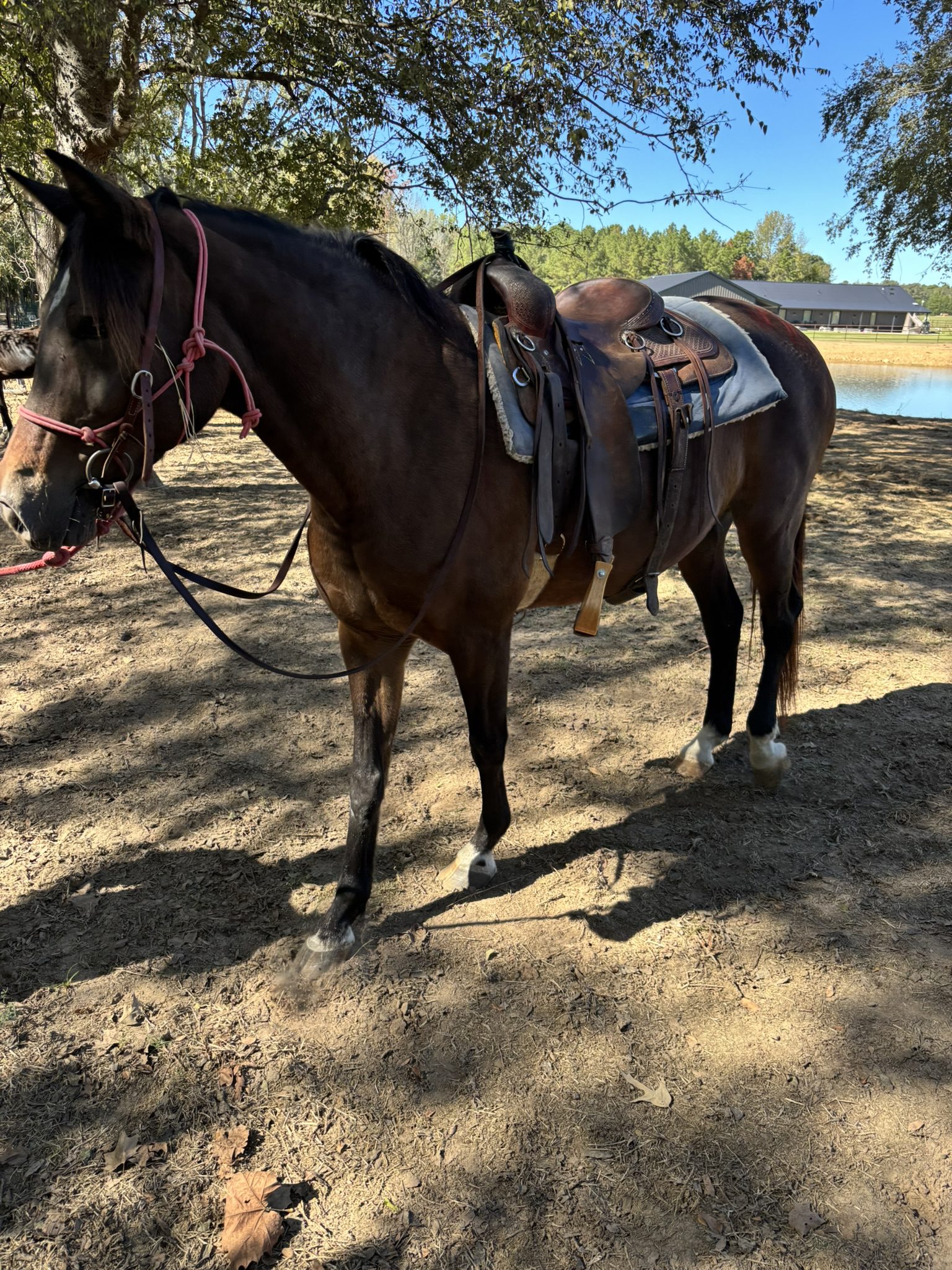 Under saddle, Maleficent rides beautifully. She is responsive, willing, and attentive, offering a smooth and balanced ride that showcases her natural talent. Her intelligent, thoughtful nature makes her a joy to work with both in the arena and out on the trail.