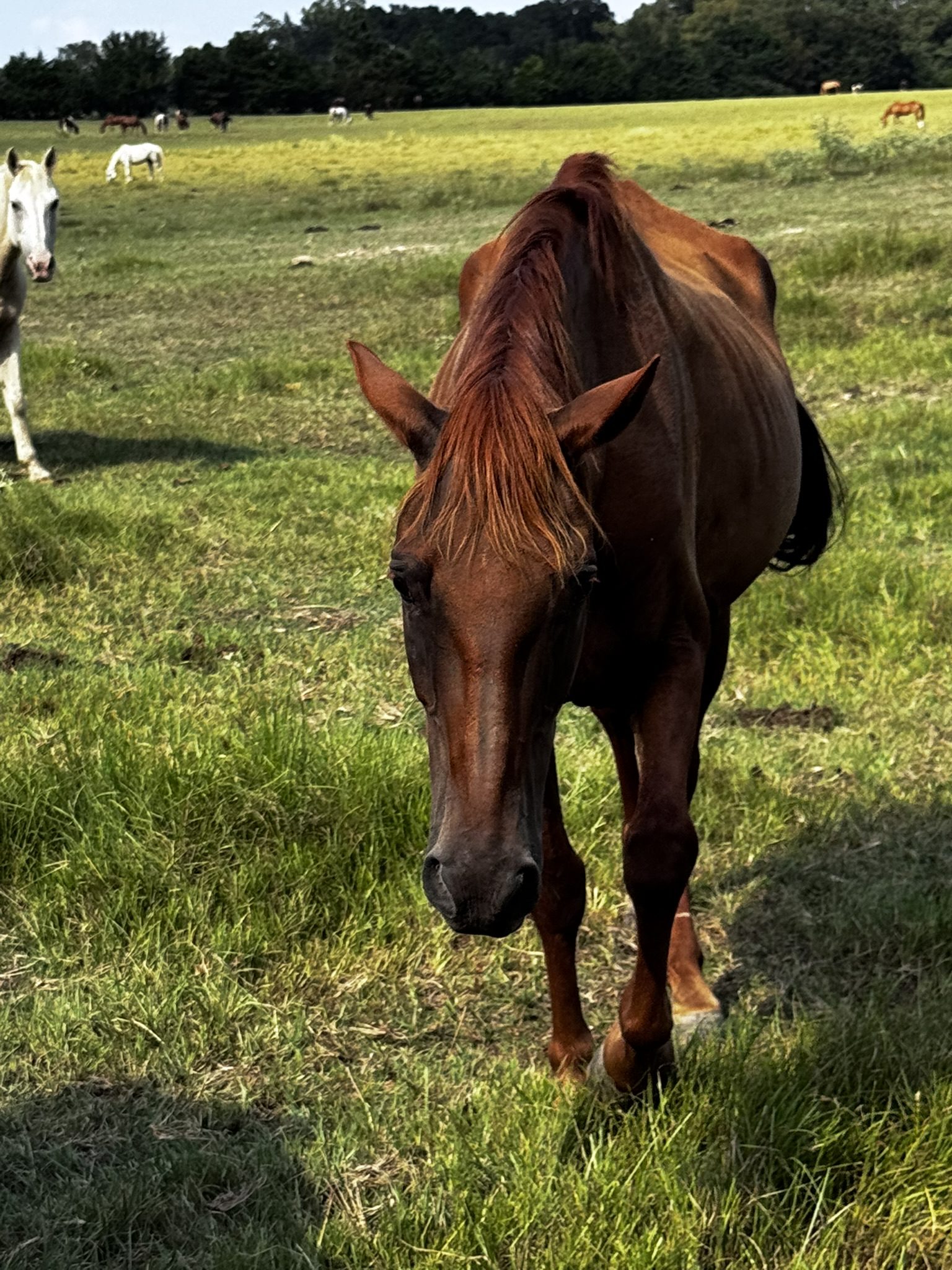 Rocket is a 20-year-old sorrel Paso Fino gelding with a heart as big as his story. He was the very first horse we ever took in—and the reason Texas Made Horse Rescue exists today. When his previous owners moved away, Rocket was left alone in the pasture, missing the companionship he once had. We brought him home so he’d never be lonely again, and before long, we began rescuing other horses to be his friends.