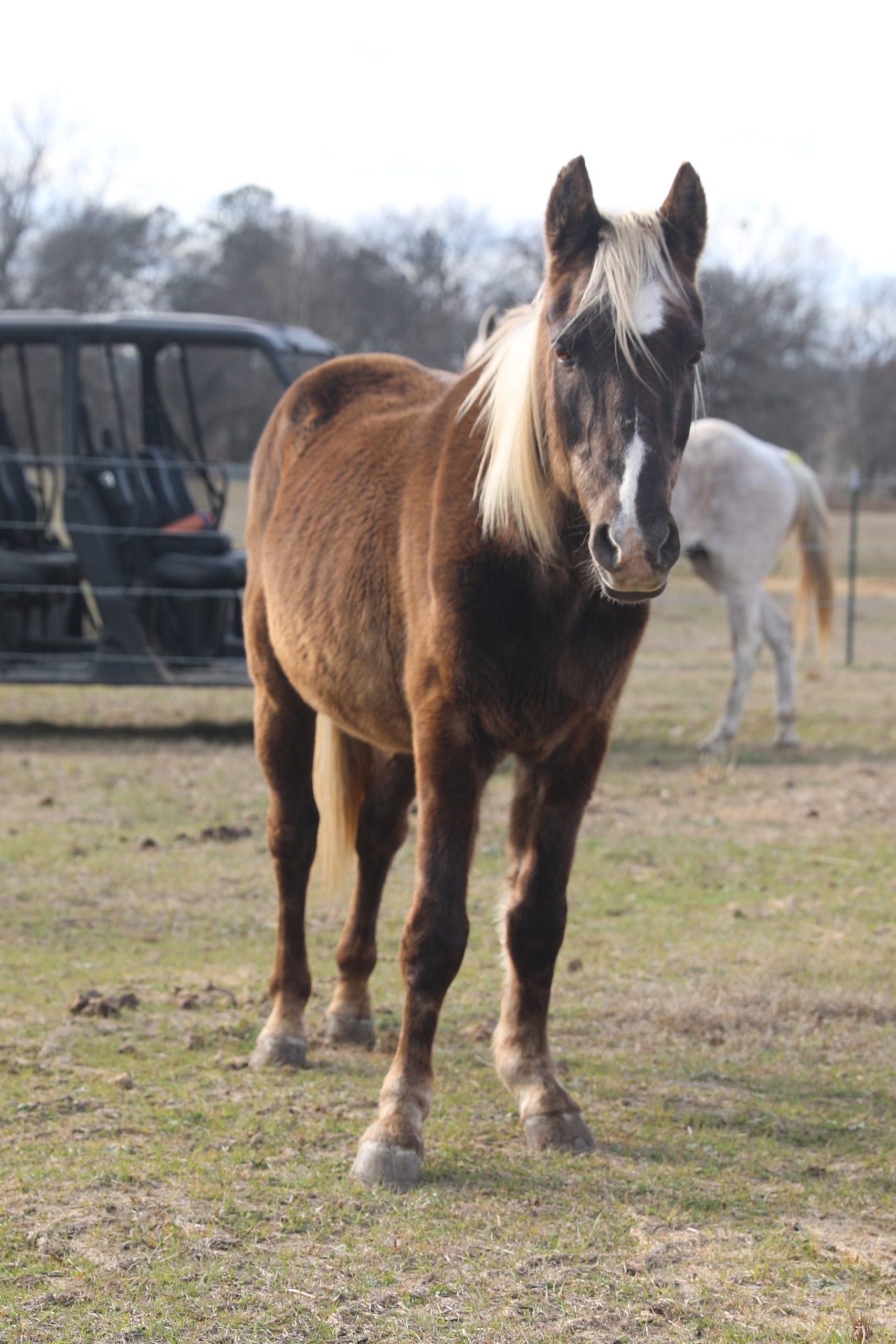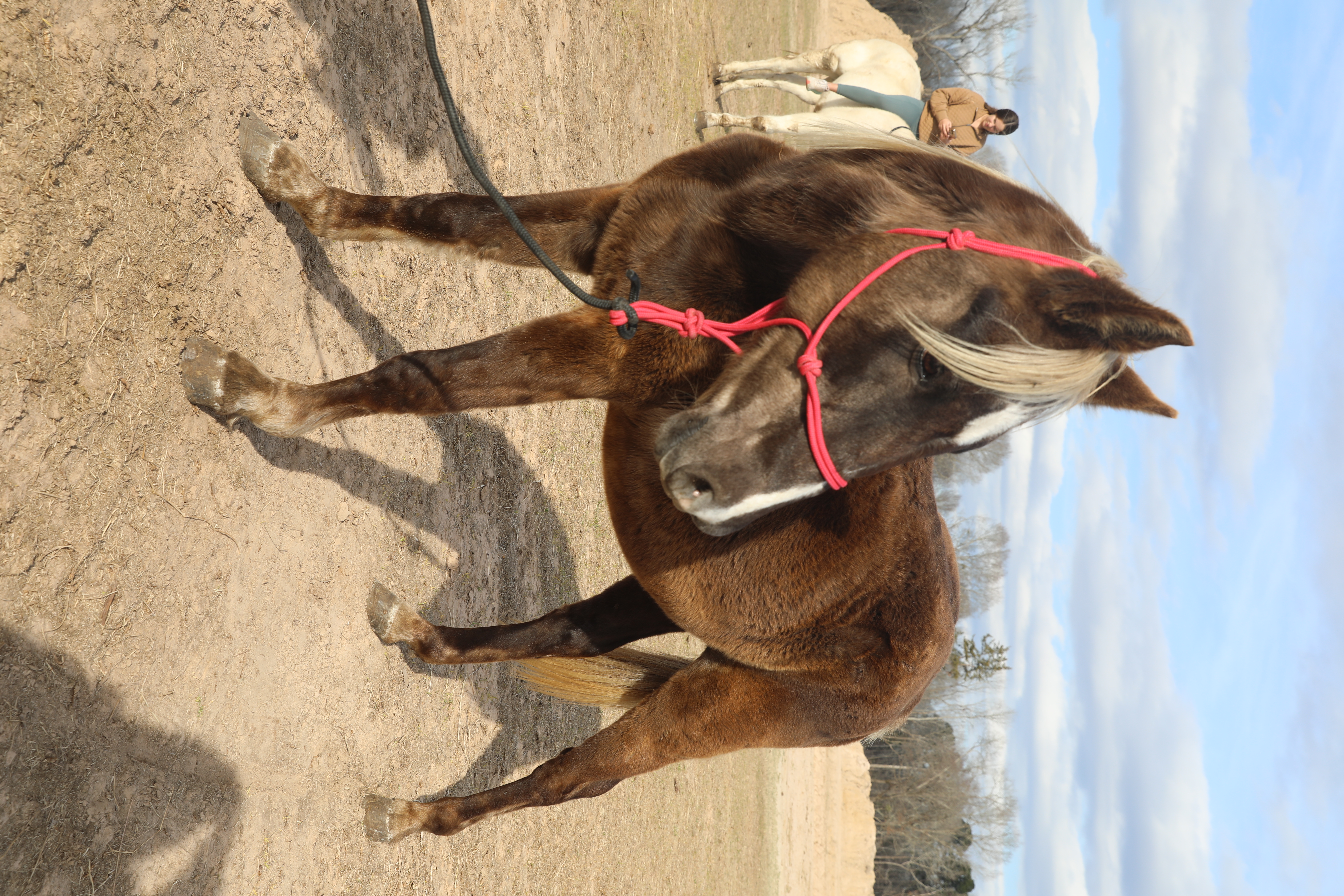 Rocky is a Rocky Mountain gelding and a truly trustworthy horse. He is an absolute eye-catcher, with a gorgeous bright white mane and tail that perfectly complement his rich chocolate-brown coat. Beyond his striking looks, Rocky is a one-of-a-kind horse who gives his riders full confidence with every ride. His steady, dependable nature makes him a joy to have out here, and we truly enjoy him.
